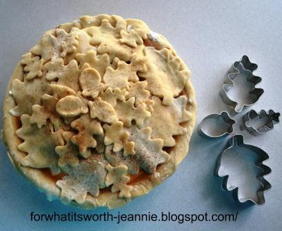 Pretty crusts have always alluded me, but no more! Earlier this year I made a cobbler and by chance had left my jar of cookie cutters on the counter-right where I could see them! In that "ah-hah" moment right before cutting the pie crust into strips for a not so perfect lattice top I stopped, opened the jar, pulled out a cookie cutter and started cutting the crusts. A pretty pie was born!